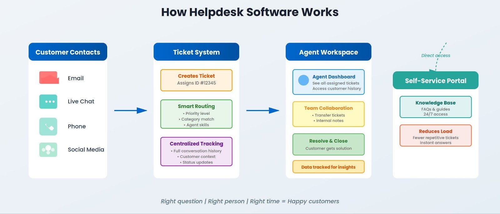 - Multi-channel Support - Customers expect support across email, live chat, social media, and phone platforms. Helpdesk software integrates all these into a single dashboard, offering a consistent support experience.